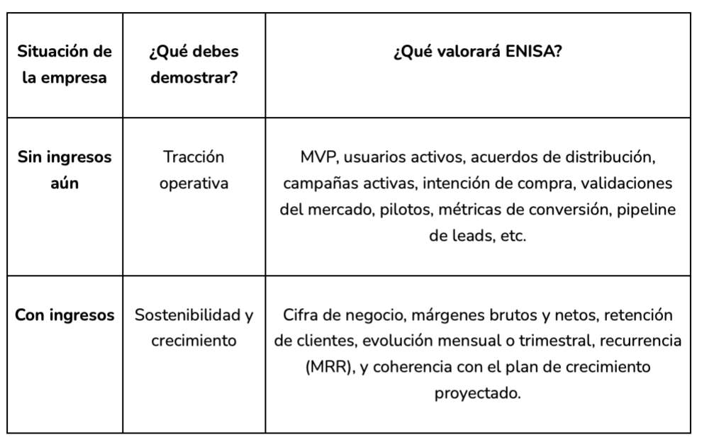ENISA no exige estar en beneficios, pero sí que la empresa tenga una estrategia clara de generación de ingresos, o bien una estructura que justifique su escalabilidad a corto o medio plazo.